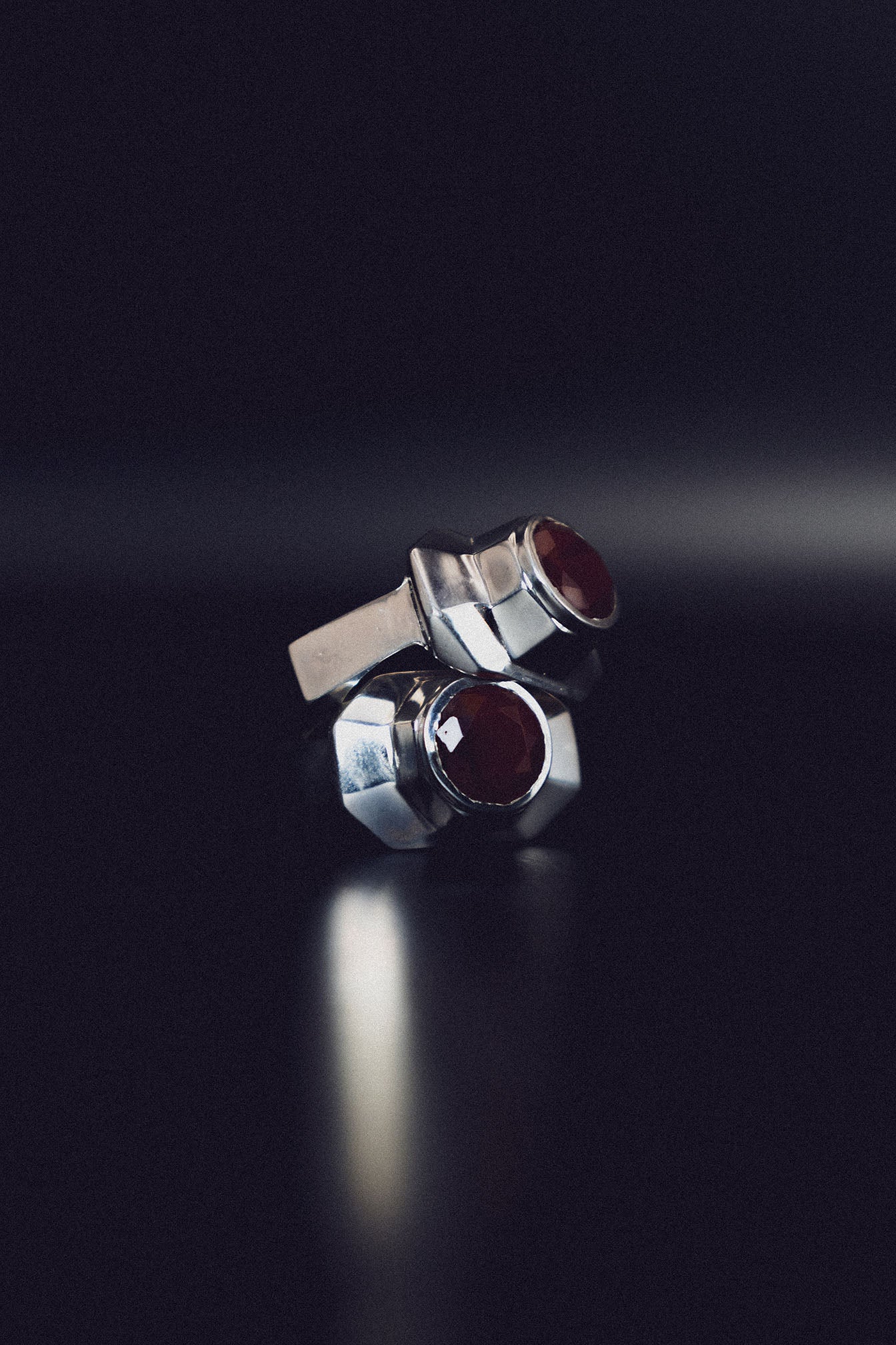 RAW is an exclusive collection of 925 sterling silver, serialised and produced in limited editions. It is an ode to the connection between past and present, exploring a universe where industrial language, mysticism, abstraction, and influences from Egyptian and Art Deco art converge in an expression of geometry and profound symbolism. Inspired by robust structures and straight lines that symbolise direction and spiritual strength, each piece is designed with a minimalist aesthetic that not only adorns but also evokes balance and purity. The addition of precious and semi-precious stones not only enhances its beauty but also offers strength and protection to those who wear it.